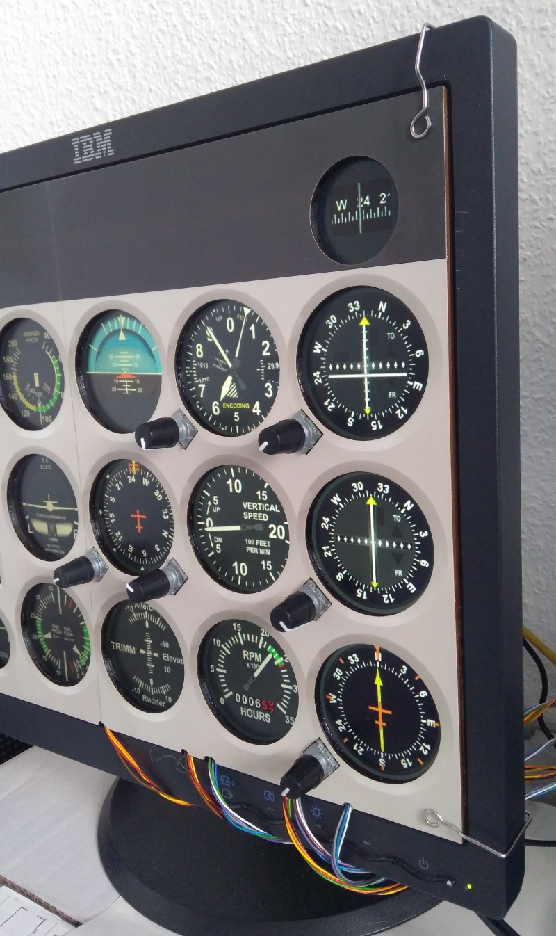 Das TFT-Panel hat sechs Drehimpulsgeber. Für die Verarbeitung der Ereignisse wird der Encoder-Controller auf der Basis eines Arduino eingesetzt. Der Controller kommuniziert über Ethernet mit dem Flugsimulator.