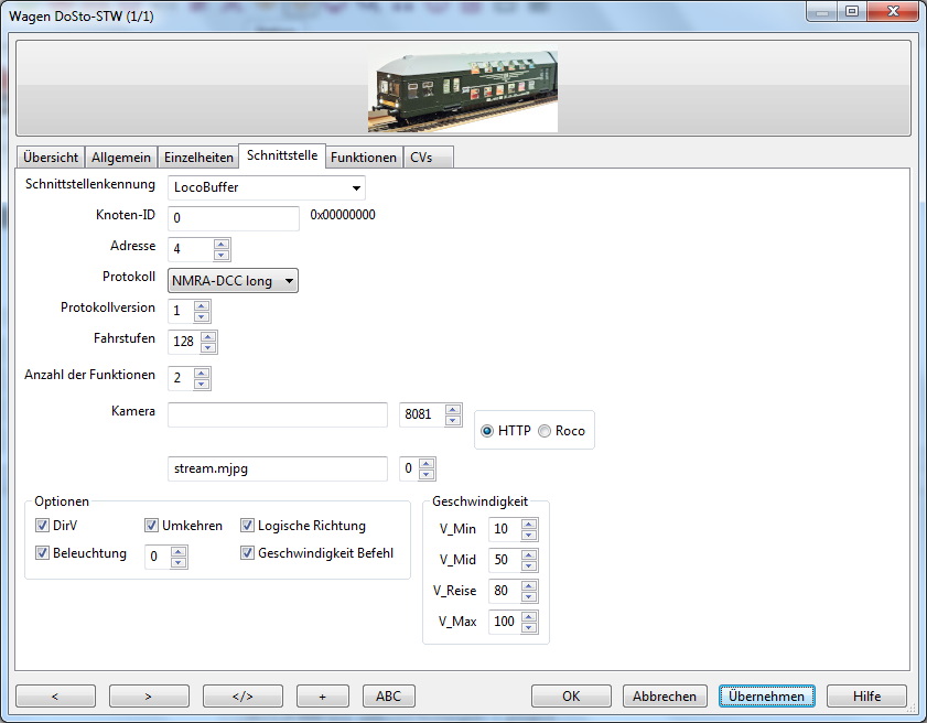 Im Reiter Rocrail Eigenschaften → Allgemein werden den folgenden Funktionen die Zentralen zugeordnet: