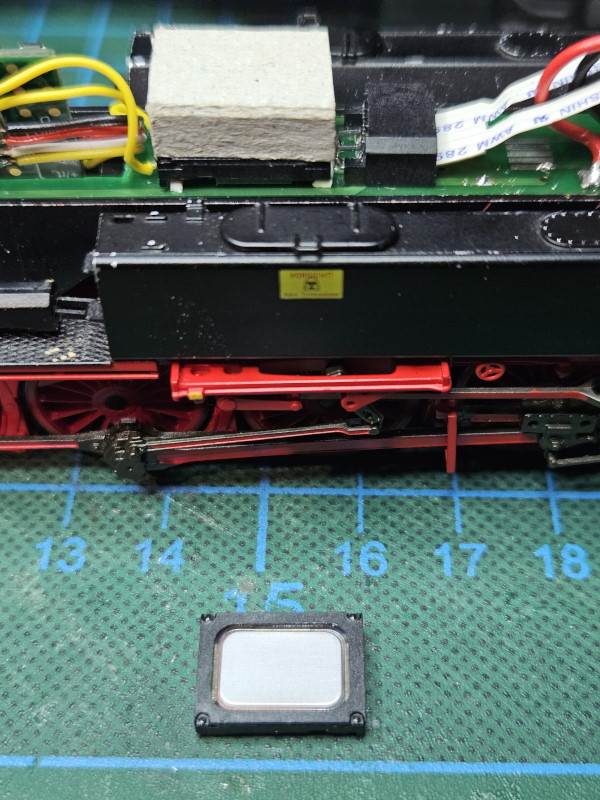 Zusätzlich wurde an den Decoder noch ein SUSI Soundmodul von Dekoderwerk angeschlossen. Der vorgesehene Lautsprecher in kleiner Bauform klang erstmal jämmerlich. Nach einiger Recherche wurde dann passend zum Lautsprecher eine kleine Pappbox darüber gesetzt und oben auf den Lautsprecher geklebt. Uns siehe da … es klang deutlich besser und lauter.