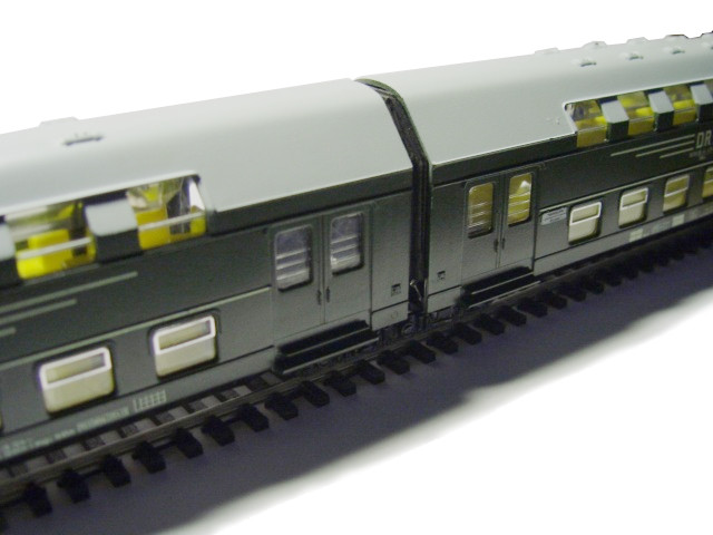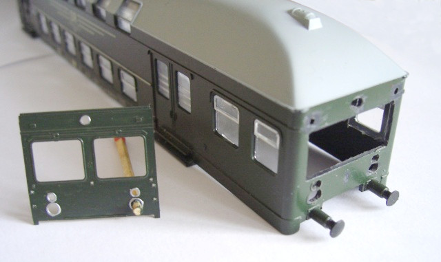 Ich habe eine Doppelstock-zwei-Wagen-Einheit der ehemaligen Modellbahn-Firma Schicht aus Dresden. Diese Einheit soll als Wendezug umgebaut werden.
