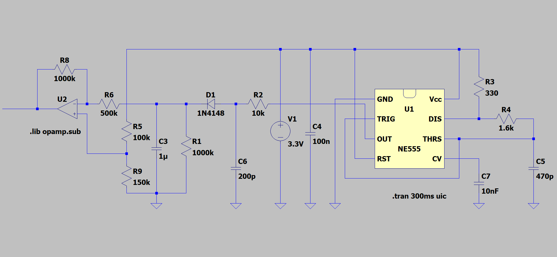 Als OPV soll bei der Umsetzung der MCP6471, der geringe Bias-Ströme und gutes Rail-to-Rail-Verhalten aufweist, eingesetzt werden.