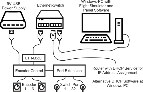 DHCP server for automatic address assignment. A Router that provides an Internet connection has a DHCP server built in. This server assigns IP addresses to new devices in the network. Such a router does not need to have an Internet connection to use the DHCP function. Usually an Ethernet switch is integrated, which is sufficient for first tests.