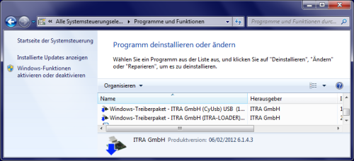 In der Liste der installierten Programme erscheinen beide installierte Treiberpakete, die für den erfolgreichen Betrieb der Geräte notwendig sind.
