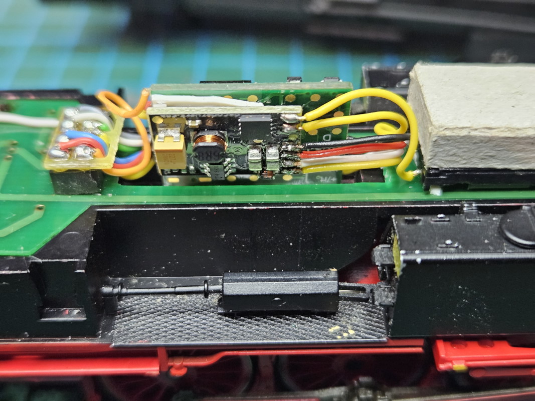 Die Lok wurde mit einem Lokdekoder ausgerüstet und die LEDs am Tender wurden auf Dual-LEDs weiß-rot umrerüstet.