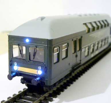 Ich habe eine Doppelstock-zwei-Wagen-Einheit der ehemaligen Modellbahn-Firma Schicht aus Dresden. Diese Einheit soll als Wendezug umgebaut werden.