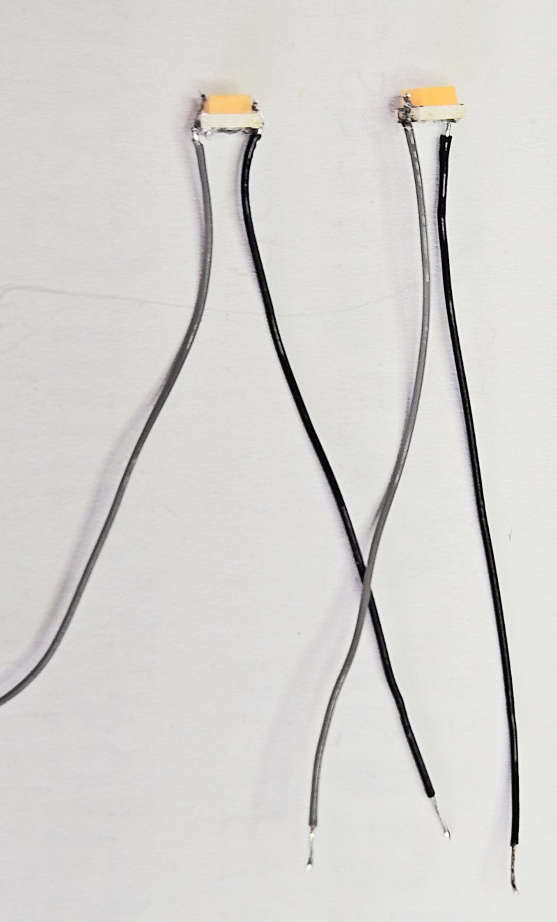 Die Abdeckung der alten Glühlampen wurden entfernt/geschlossen. Auf die Pufferbohle wurden neue Lampen geklebt, in die warmweiße LEDs 0805 eingeklebt wurden.