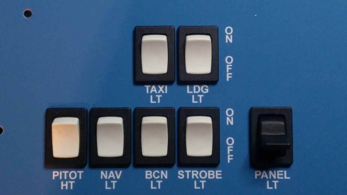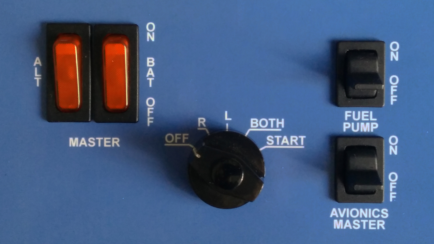 Die Batterie, Alternator, Avionics-Schalter sind Standardausführungen. Bei den Lichtschaltern wurde wegen des Aussehens jeweils ein schwarzer und weißer Schalter zu einem schwarz-weißen Schalter umgebaut.