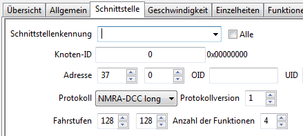 Weiterhin ist zu beachten, dass nur Lok-Dekoder mit 128 Fahrstufen unterstützt werden. Im rocrail sind dazu entsprechende Einträge vorzusehen, damit der Fahrregler entsprechend „dispatched“ wird. Der Forumsbeitrag war mir dabei eine gute Hilfe, als es anfangs nicht klappte. Wichtig ist hier die Protokoll-Einstellung.