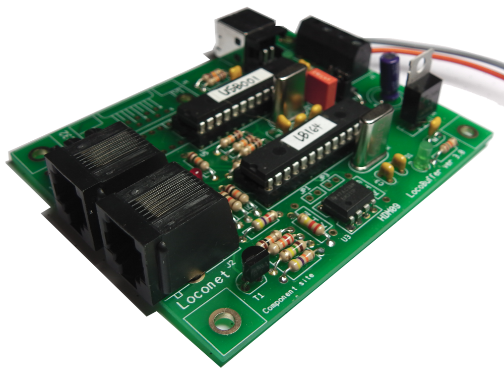 Damit Fahrregler und andere Bausteine über LocoNet mit einem PC als Zentrale kommunizieren können, wird eine Schnittstelle benötigt, welche die Signale von und zum PC zwischenspeichert und die Kommunikation mit dem LocoNet realisiert. Der erste Entwurf des LocoBuffer stammt von John Jabour. Diese Seite ist nur noch über das Web-Archiv verfügbar.