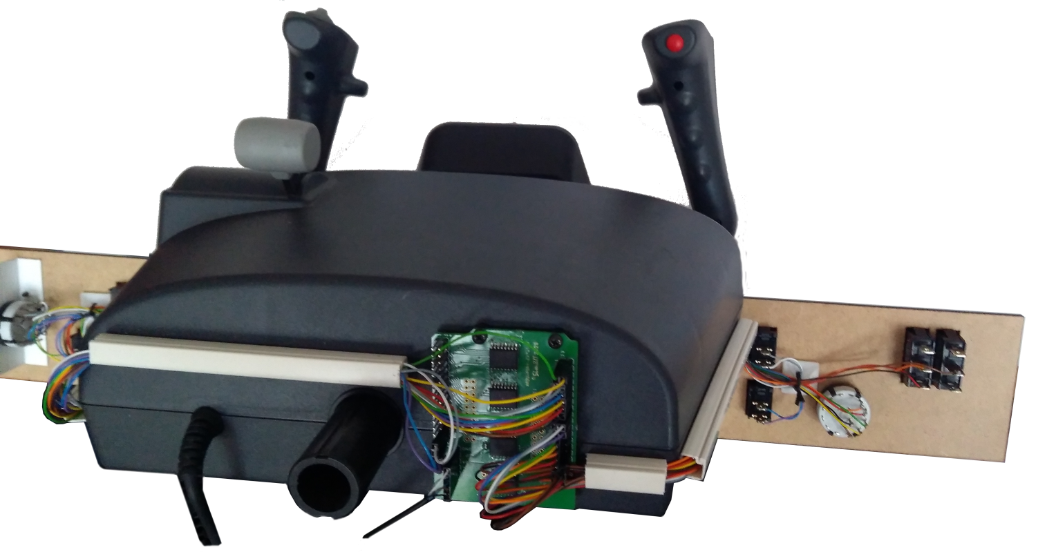 Die Schalter-Einheit soll links und rechts am Yoke angebaut werden. Die Erweiterung für die Schalter ist hinten an den Yoke angeschraubt und die Anschlussleitungen sind in kleinen Kabelkanälen zu den Schaltern geführt. Die Schaltererweiterung wird über ein 5-poliges I²C-Kabel (GND, 5P, SDA, SCL, INT) mit der Encoderbaugruppe am TFT-Panel verbunden.