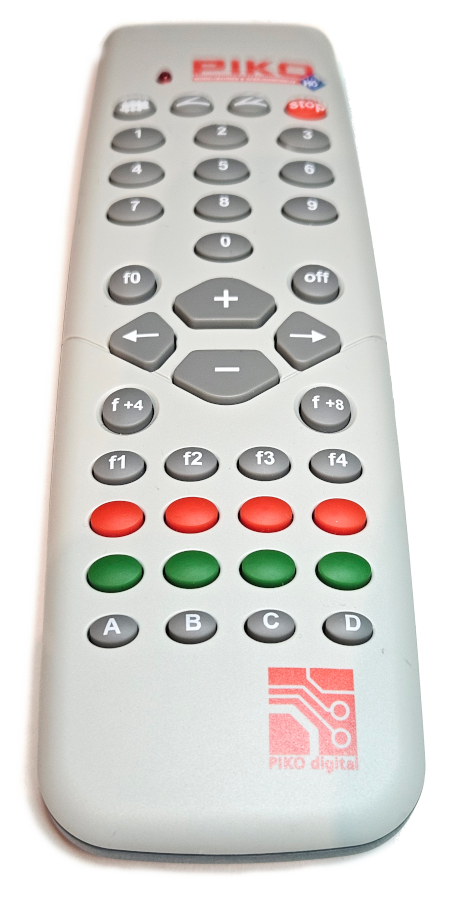 Für die Verwendung von zwei IR-Fernbedienungen von Piko (baugleich IRIS Uhlenbrock) habe ich den LocoNet-IR-Empfänger von Uhlenbrock in das LocoNet eingebunden. An den IR-Empfänger können mit den vier IR-Kanälen A bis D dann vier Fernbedienungen angeschlossen werden. Oder eine Fernbedienung kann mit den vier umschaltbaren Kanälen jeweils eine Loks bedienen. Die Zuordnung der Loks erfolgt an der Fernbedienung mit Eingabe der Lokadresse für den jeweiligen Kanal. Die angeforderte Lokadresse erhält dann vom rocrail-Slotserver einen Slot zugewiesen. Die Weichensteuerung wird nicht verwendet.