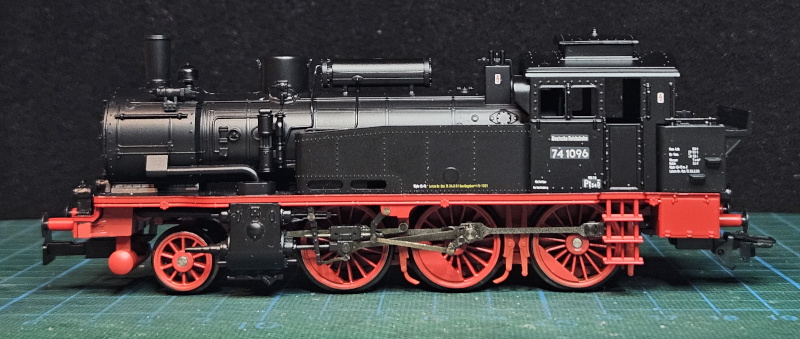 Die BR74 - DR-Version Epoche III aus einer TRIX-Startpackung 21531 - hat bereits einen Digitaldecoder mLD3 mit SUSI-Schnittstelle. An der Aufsteckplatine befindet sich aber kein Steckverbinder für SUSI. Die Signale liegen nach RCN-121 aber an folgenden Pins an: GND (Pin 20), U+ (Pin 16), Zugbus-Takt (Pin 5) und Zugbus-Daten (Pin 6).