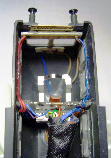Ein zweiter Lichtstreifen wird zwischen die Befestigungsbolzen in der Höhe des Schlitzes im Fußbodens des Oberdecks eingesetzt. Diese Lösung ermöglicht alle elektrisch versorgten Teile in das Oberteil des Wagens einzubauen. Die elektrische Verbindung zu den Drehgestellen ist ja bereits (etwas modifiziert gegenüber oben) vom Steuerstand vorhanden, die gleiche Art wurde im zweiten Wagen realisiert. An die Versorgung von den Gleisen wurde ein Graetz-Gleichrichter mit Kondensator angeschlossen. Die LEDs sind dann jeweils über Vorwiderstand angeschlossen. Da unten die Entfernung zur Lichtleiste geringer ist, ist dort nur 2/3 des Stroms eingestellt, um eine ähnlich helle Beleuchtung zu erreichen.