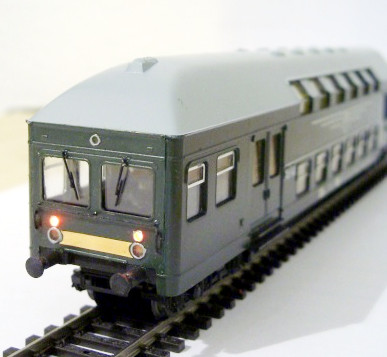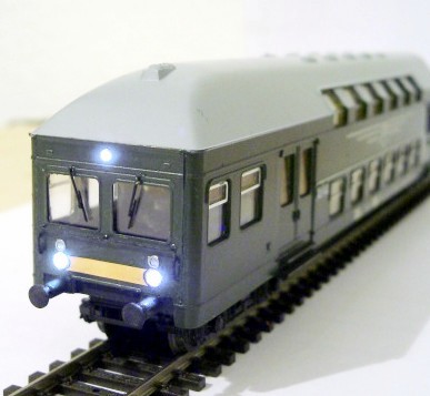 Ich habe eine Doppelstock-zwei-Wagen-Einheit der ehemaligen Modellbahn-Firma Schicht aus Dresden. Diese Einheit soll als Wendezug umgebaut werden.